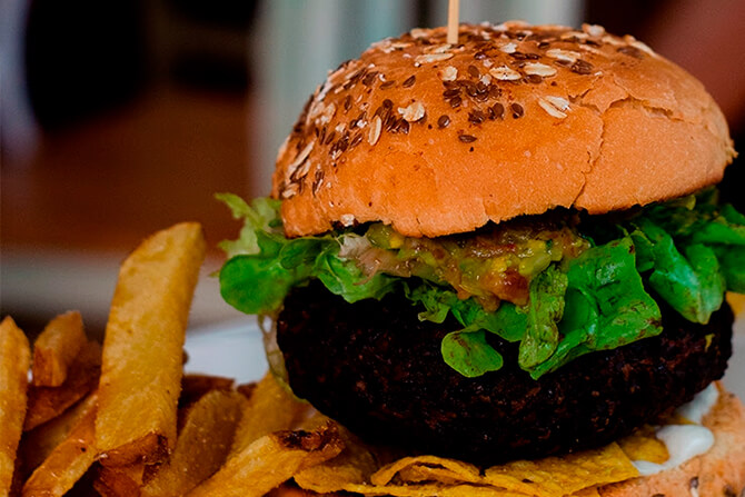 Esta vez probamos una hamburguesa de porotos negros con lechuga, palta, mayonesa vegana y nachos que aportaban una crocancia exquisita.